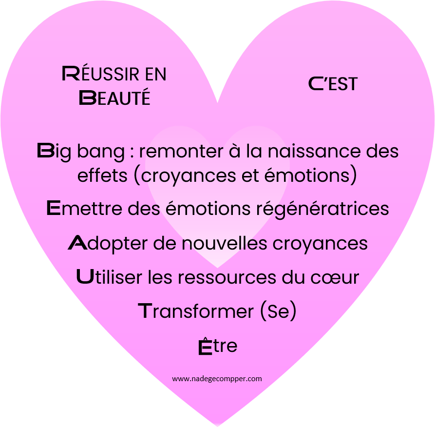 Je résume le processus de toutes vos transformations dans le tableau ci-dessous et l’infographie en forme de cœur que vous avez pu voir plus haut :