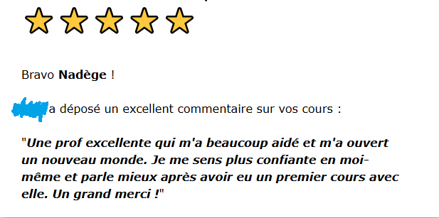 Et regarde ce que m’a dit l’une de mes clientes (une étrangère) qui manquait de confiance en elle, après une seule séance !