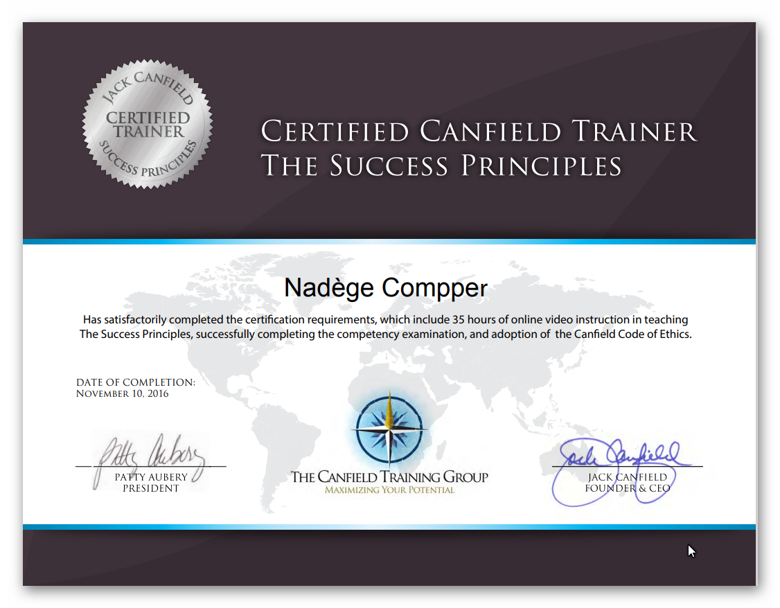 Ma formation en coaching avec Jack Canfield (Principes du Succès) a continué de me donner les clés indispensables pour aider les enfants et leurs parents dans leur réussite, notamment pour avoir un « mindset » inattaquable. J’ai d’autres sources un peu plus, disons, originales…