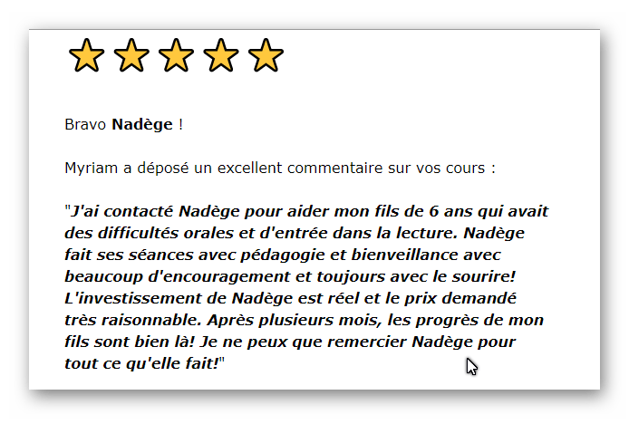 L’un de mes petit plus, c’est que non seulement je prendrai soin de toi, mais je pourrai aussi t’aider si tu as des questions concernant les apprentissages de ton enfant, sur la lecture, l’attention, et d’autres questions orthophoniques. Si tu n’as pas d’enfant, peut-être que tu les aimes et travailles avec eux. Ces connaissances te seront très utiles également, notamment si tu as décidé de faire de l’instruction à la maison.